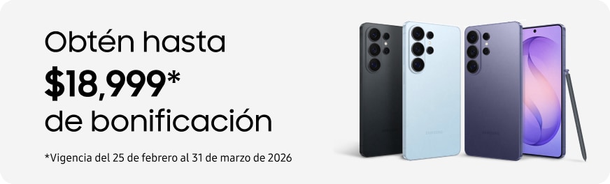 Visita tu centro de atención a clientes más cercano y entrega tu equipo de la serie S23 o S24 y estrena tu nuevo Galaxy S26 con hasta 24 MSI